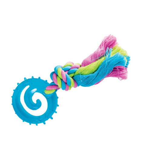 Πολύχρωμο παιχνίδι για κουτάβια & μικρά σκυλιά από TPR υλικό και σχοινί.