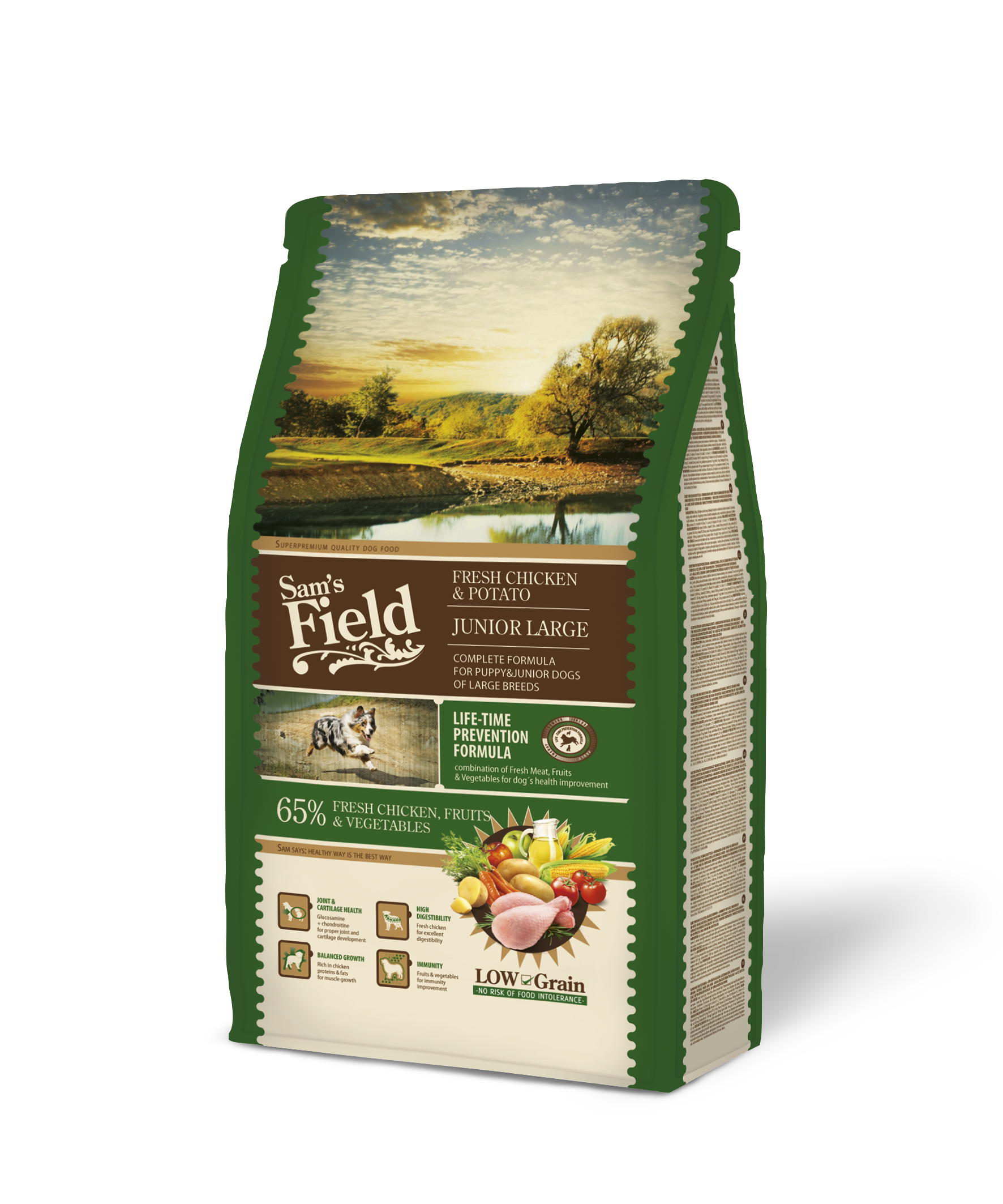 H Sam’s Field είναι σχεδιασμένη να συνδυάζει ,συγκεκριμένες διατροφικές ανάγκες των σκύλων σε αρμονία με το μέγεθος της φυλής, την ηλικία και τις διατροφικές απαιτήσεις καθ’ όλη την διάρκεια της ζωής τους. Πλούσιες σε κρέας ,φρούτα και λαχανικά ,αυτές οι μοναδικές συνταγές είναι ιδανικές ώστε όλα τα θρεπτικά συστατικά να απορροφούνται σωστά από το πεπτικό σύστημα του σκύλου ,προφέροντας σωστή ανάπτυξη, ενέργεια , αντι οξείδωση , υγιές δέρμα , υγιές τρίχωμα . Τα σιτηρά , κυρίως το σιτάρι , μειώνουν την πεπτικότητα των θρεπτικών συστατικών που περιέχει μια τροφή . Η Sam’s Field Grain Free και Low Grain ,εξαλείφει τον κίνδυνο διατροφικής δυσανεξίας και προσφέρει ποιότητα ζωής με υγεία .