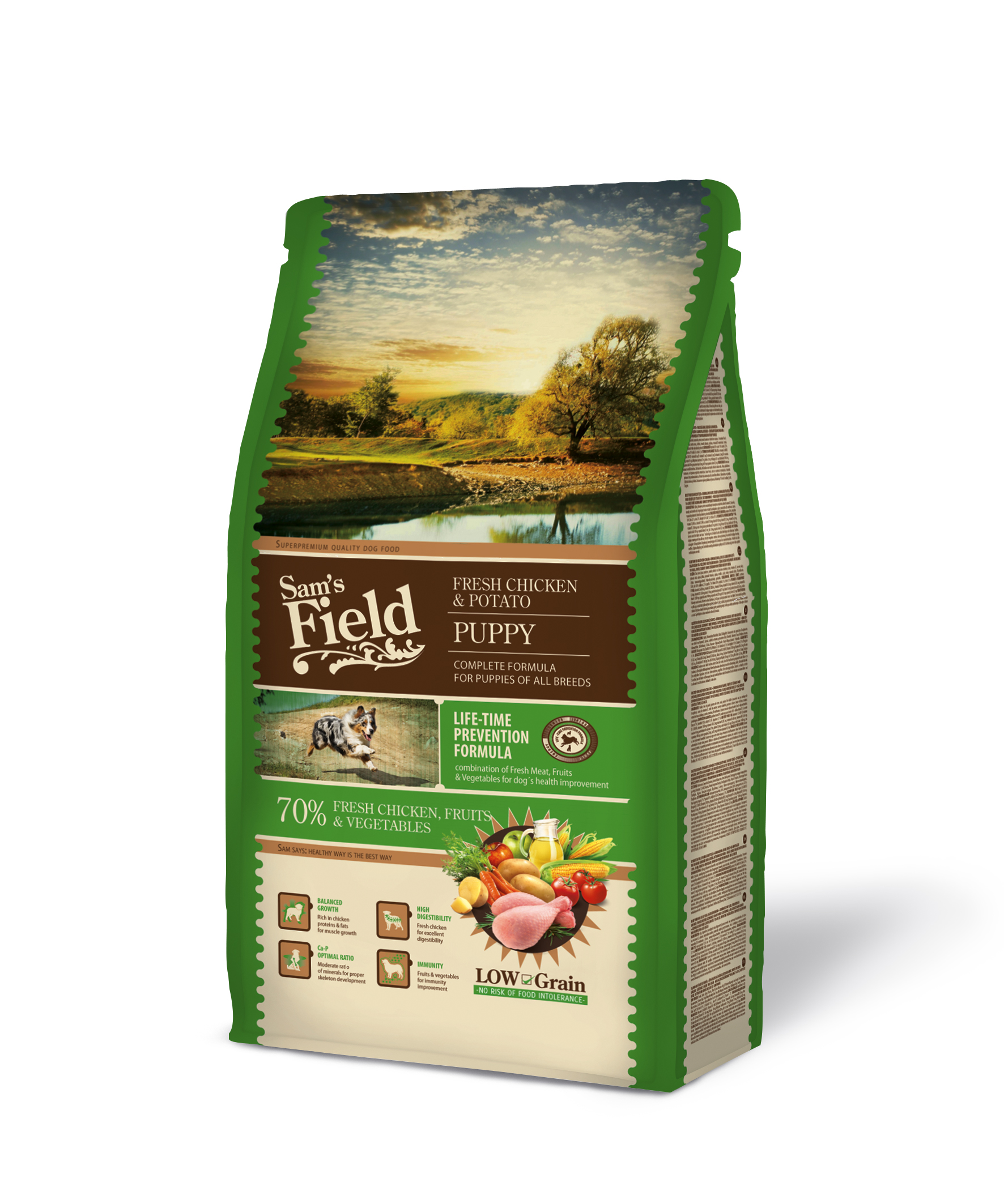 H Sam’s Field είναι σχεδιασμένη να συνδυάζει ,συγκεκριμένες διατροφικές ανάγκες των σκύλων σε αρμονία με το μέγεθος της φυλής, την ηλικία και τις διατροφικές απαιτήσεις καθ’ όλη την διάρκεια της ζωής τους. Πλούσιες σε κρέας ,φρούτα και λαχανικά ,αυτές οι μοναδικές συνταγές είναι ιδανικές ώστε όλα τα θρεπτικά συστατικά να απορροφούνται σωστά από το πεπτικό σύστημα του σκύλου ,προφέροντας σωστή ανάπτυξη, ενέργεια , αντι οξείδωση , υγιές δέρμα , υγιές τρίχωμα . Τα σιτηρά , κυρίως το σιτάρι , μειώνουν την πεπτικότητα των θρεπτικών συστατικών που περιέχει μια τροφή . Η Sam’s Field Grain Free και Low Grain ,εξαλείφει τον κίνδυνο διατροφικής δυσανεξίας και προσφέρει ποιότητα ζωής με υγεία .